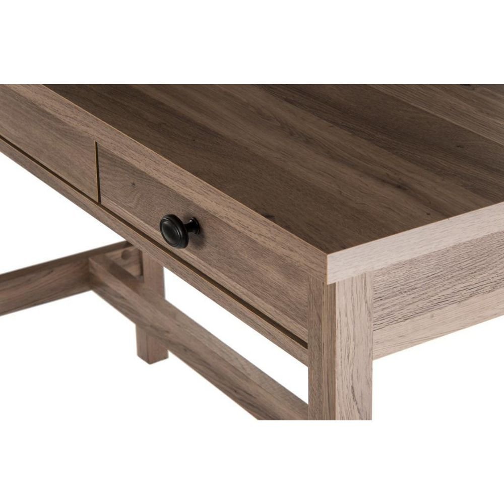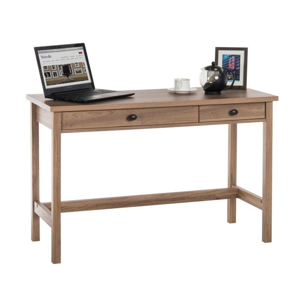 - Enjoy this home study desk, designed with a compact structure this desk is ideal for the bedroom or living room. With it’s chunky desk top and two stationery drawers, this desk can be used for personal or work activities. The stylish salt oak finish and metal handles give a modern look that will work with most environments.