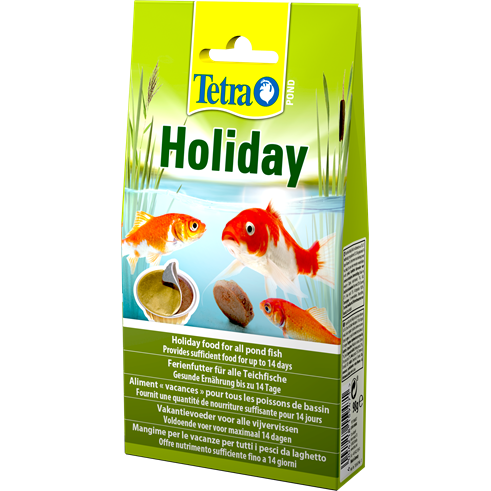 Holiday food for all pond fish. This dimensionally stable product supplies the fish with all the food they need for up to 14 days.